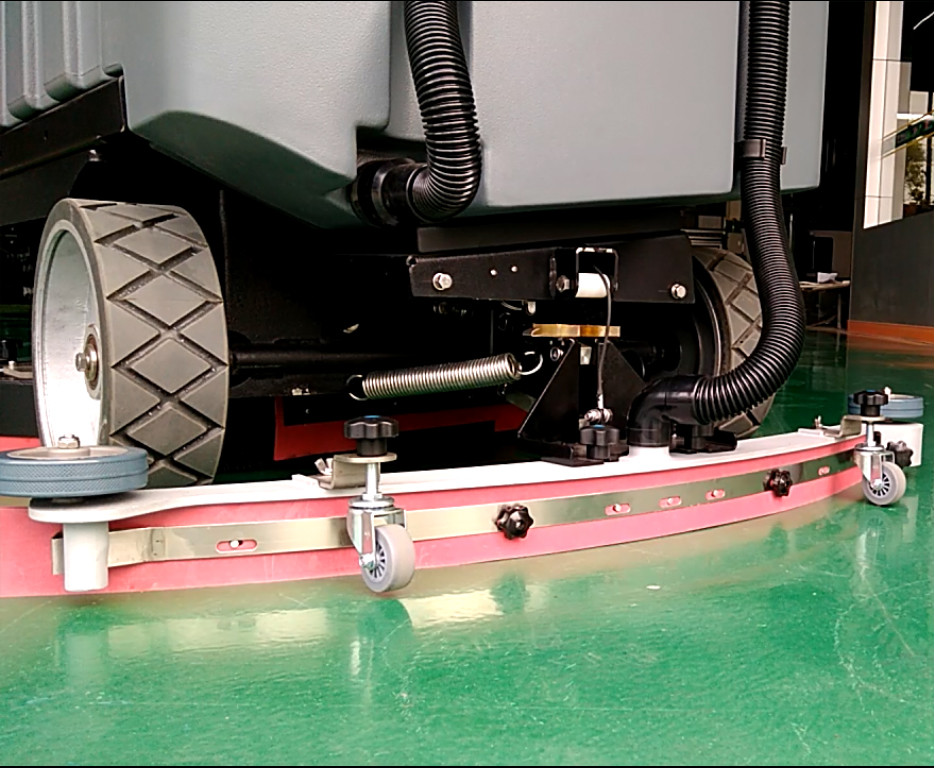 6、更換破損的洗地機(jī)刮條,調(diào)整洗地機(jī)吸水扒的角度,對(duì)于正確的使用,洗地機(jī)吸水扒應(yīng)根據(jù)洗地機(jī)刮條的磨損情況來調(diào)節(jié)其高度,在清洗的過程中,洗地機(jī)后刮條應(yīng)與地面呈現(xiàn)一定角度。